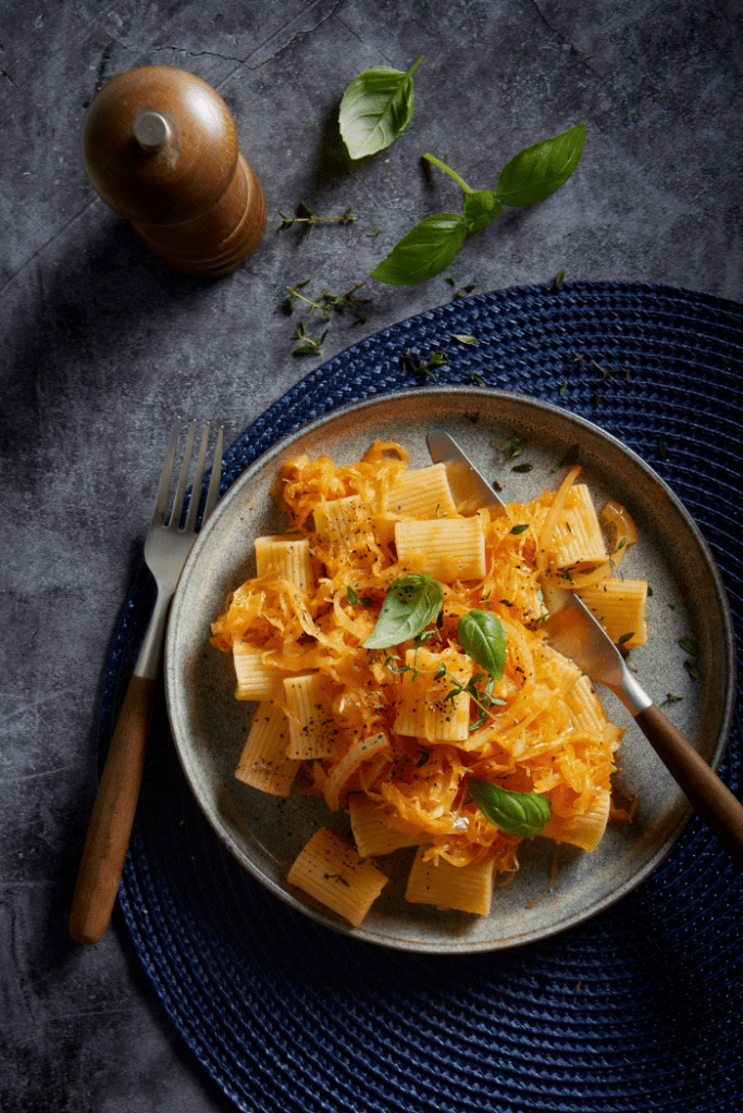 Kook ondertussen de rigatoni volgens de aanwijzingen op de verpakking. Giet af, maar bewaar een kopje kookvocht.