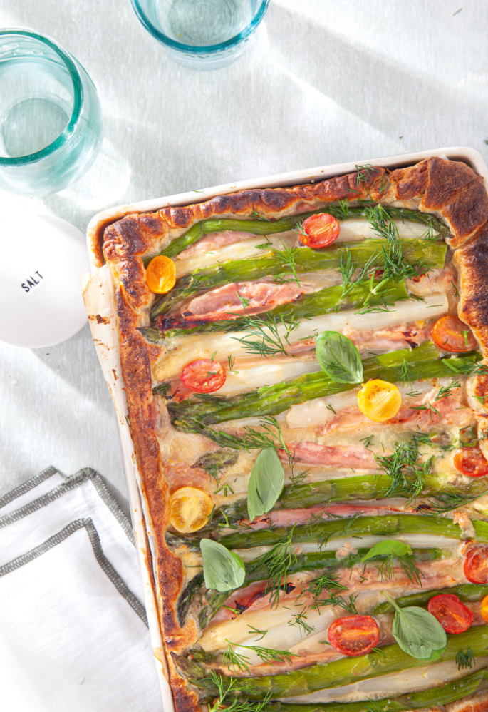 Aspergetaart van croissantdeeg