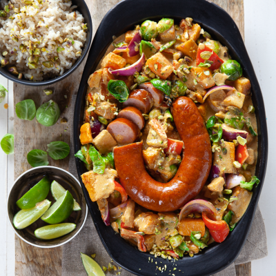 4 personen - 50 minuten bereiding Serveer tip Download hier het weekrecept als PDFPDF weekrecept Ingrediënten 1 rookworst van Meesterhand 300 gram rijst 2 zoete aardappels 1/2 knolselderij 1/2 klein pompoentje 2 winterwortels 2 pastinaken 50 gram boter 2 el olijfolie 2 el gele- of rode currypasta 500 ml romige kokosmelk 1 rode paprika 200 … Meer lezen over Winter curry