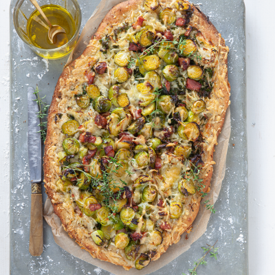 4 personen - 20 minuten bereiding, 20 minuten oven Serveer tip Download hier het weekrecept als PDFPDF weekrecept Ingrediënten 1 pak mix voor pizzadeeg of een rol kant-en-klaar pizzadeeg 300 gram spruitjes 200 gram spekjes 250 ml crème fraîche 200 gram geraspte pizzakaas 200 gram boerenkool 200 gram zuurkool 4 teentjes knoflook 6 takjes tijm … Meer lezen over Winterpizza