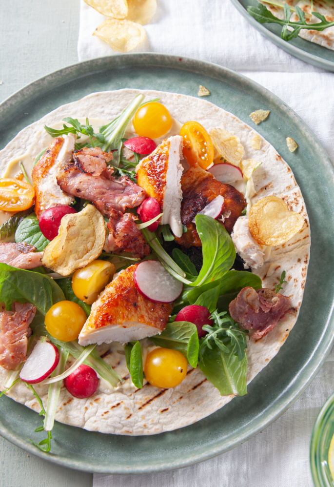 2 personen - 30 minuten bereiding Serveer tip: Bacon lettuce tomato wrap Ingrediënten 1 kropje ijsbergsla 1 bakje kerstomaatjes 100 gr bacon of ontbijtspek 2 kant-en-klare gegrilde kippenboutjes bosje radijsjes 4 wraps Uit de voorraadkast zout peper mayonaise olijfolie Bereiding Verwijder de buitenste bladeren van de ijsbergsla en snijd de krop in vieren. Grill ze … Meer lezen over Bacon lettuce tomato wraps